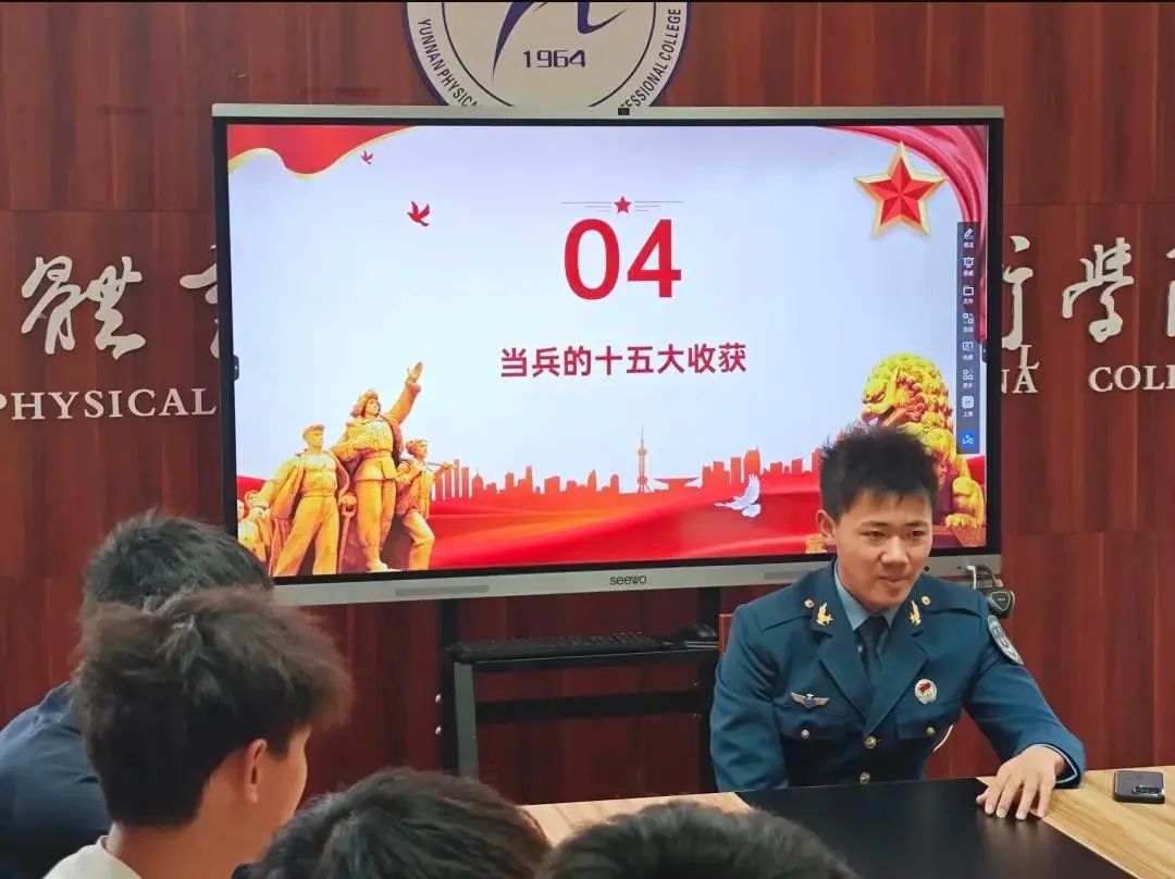 刘安发同学围绕2025年征兵流程、入伍标准、学费补偿、升学就业优待等核心内容展开深度解读。从报名材料准备到服役期间的权益保障,每一个细节都清晰呈现,让同学们对参军政策有了全面且直观的认识,为未来投身军营吃下“定心丸”。