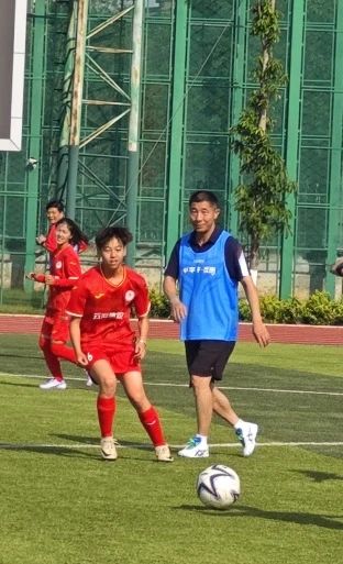 全体师生按顺序退场,教职工队与女足校队率先展开精彩对决,为本次足球比赛打响头阵。赛场上,球员们身姿矫健、配合默契,充分展现了足球运动的魅力与团队协作精神。