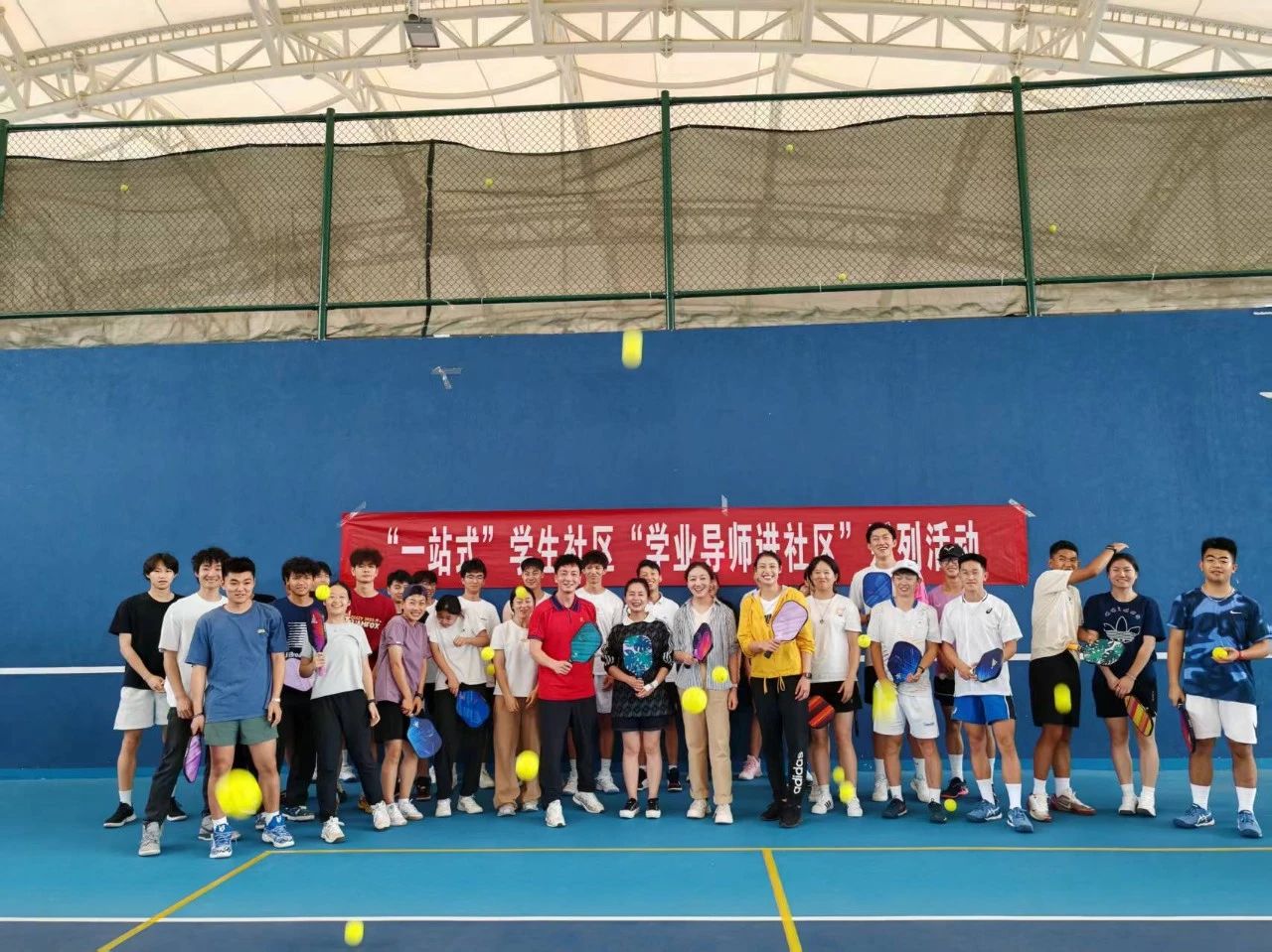 活动现场,在学业导师和专业学生的专业指导下,让从未接触过匹克球的老师和同学们快速掌握了“握拍——发球——跑位”基础技巧,传递了一种“不设门槛、注重协作、享受过程”的运动精神。如匹克球一般,球拍比网球拍小,场地比羽毛球小,规则简单易上手,既能单打对攻,也能双打协作。而青春就像匹克球一样——不设门槛,但足够热烈;注重配合,但不失个性。学四楼全体学业导师们期望通过这场活动为毕业生的未来启程注入积极能量。