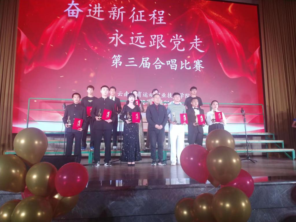 此次合唱比赛设有一等奖1名,二等奖2名,三等奖3名,优秀奖6名。全校共有12支队伍参赛,经过激烈的角逐,体育传媒与艺术学院的《强军战歌》获得一等奖,《送别》获得二等奖,《没有共产党就没有新中国》获得三等奖。