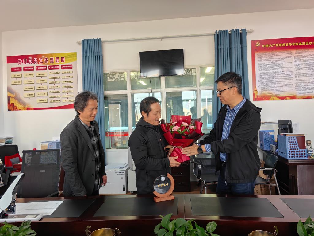 休闲体育学院班子成员为杨晖老师献上了鲜花和纪念品,衷心感谢杨晖老师几十年来为教育教学与训练的付出和贡献,杨晖老师将毕生精力奉献给党的教育体育事业,对杨晖老师勤勉踏实、默默奉献的工作作风和工作态度表达崇高的敬意。祝贺杨晖老师光荣退休,祝愿杨晖老师完美地安排好自己的晚年生活,保持心情舒畅、退而不休,健康长寿、合家欢乐!