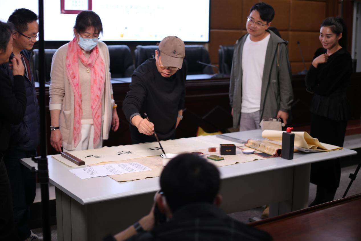 李老师分享的最后一个阶段是现场书写爨体字,李老师在桌子上铺开了一张长长的纸,右手拿起毛笔蘸了一下墨汁,远远看过去,李老师写字的时候每一笔都那么浑然天成,那一撇一捺似乎都有属于它的美好故事,一撇一捺背后沉淀的更多的还是李卫忠老师多年的练习和研究。笔落,“真人图书馆”五个字跃然眼前,在座的老师和同学无不感受到爨字的韵味与魅力。