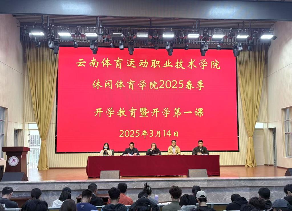 2025年3月14日下午,best365中国官方网站休闲体育学院在学校学生礼堂隆重举行2025年春季开学教育暨开学第一课活动。休闲体育学院领导班子成员、团总支书记、各专业带头人、教学秘书、辅导员及全体在校学生共同参会。