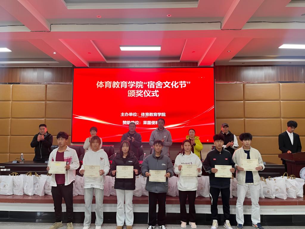 为了表彰先进,树立典型,激励体育教育学院学生积极参与宿舍文化建设,2024年12月26日于第一报告厅举办“2024年体育教育学院宿舍文化节评比”颁奖仪式。体育教育学院党总支书记王延勇老师、体育教育学院院长王井明老师、体育教育学院党总支副书记李娜老师、体育教育学院副院长马璐老师、体育教育学院专职组织员潘泽凯老师出席本次颁奖仪式。
