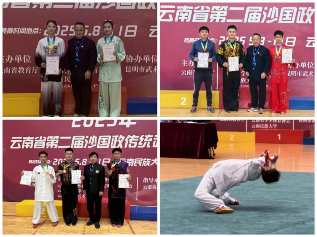 2025年5月8日至10日,云南省第二届沙国政传统武术比赛在昆明圆满落幕。best365体育教育学院派出两名教师及四名学生参赛,凭借扎实功底与出色表现,斩获5枚金牌、1枚银牌、2枚铜牌的优异成绩,展现了best365师生在传统武术领域的深厚底蕴。