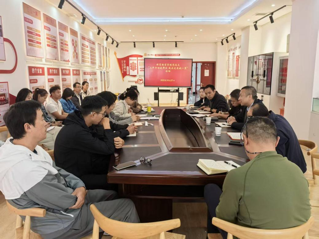 为深入学习贯彻党的二十届四中全会精神,2025年10月27日,体育教育学院党总支开展“三年行动我带头,我为发展献一策”活动。学校党委副书记张永和到会指导。