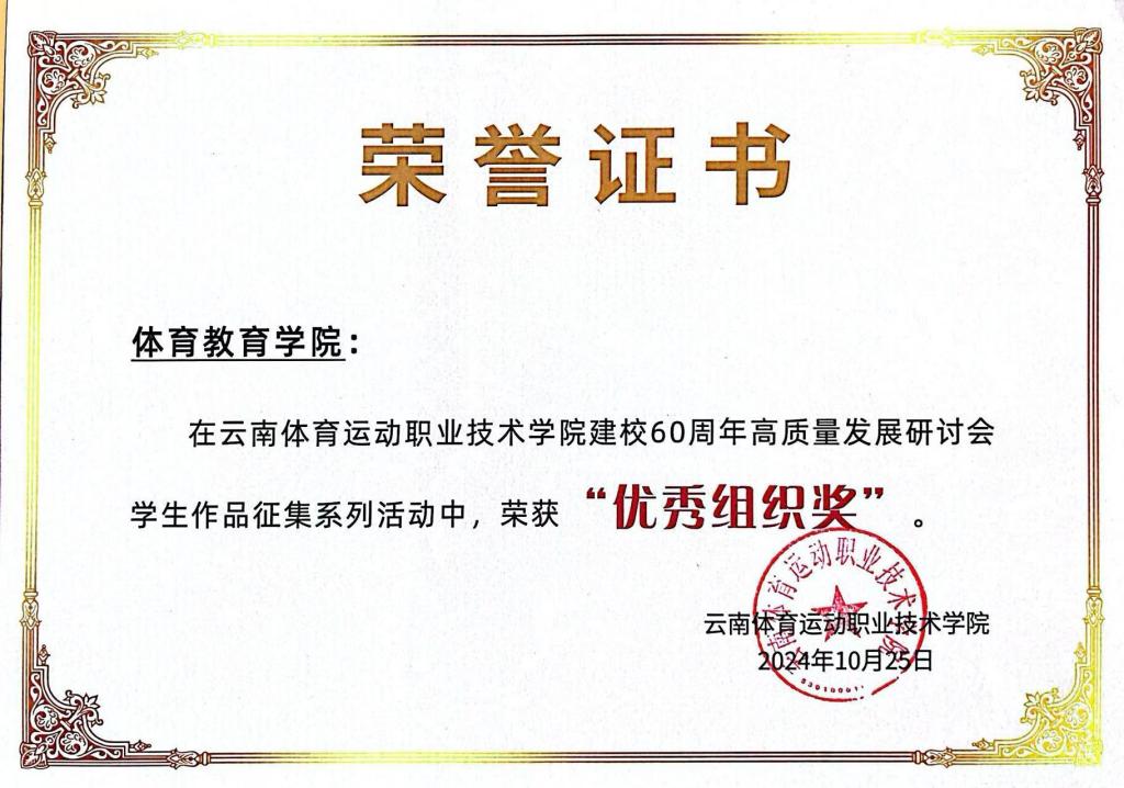 体育教育学院荣获本次活动的“优秀组织奖”,学校学生工作部、学院领导的高度重视和大力支持,以及学院师生的积极参与和共同努力,是取得这一佳绩的重要保障。
