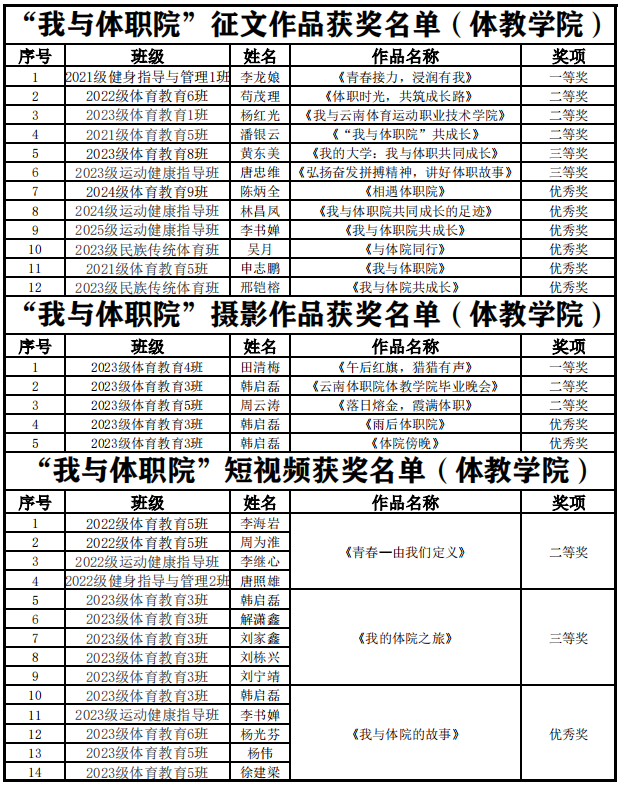 根据《best365中国官方网站高质量发展论坛系列活动总体工作方案》要求,学校组织开展高质量发展论坛“我与体职院”系列学生活动,活动评选于2024年10月落下帷幕,在本次活动中体育教育学院众多学生作品获得了优异成绩,学生们通过征文、摄影、短视频等形式,分享自己与学院的共同成长故事,展现学院的发展成就和美好愿景,充分展现了体育教育学院学生们的专业素养和创新精神,他们的精彩表现不仅为学院赢得了荣誉,也为其他学生树立了榜样。