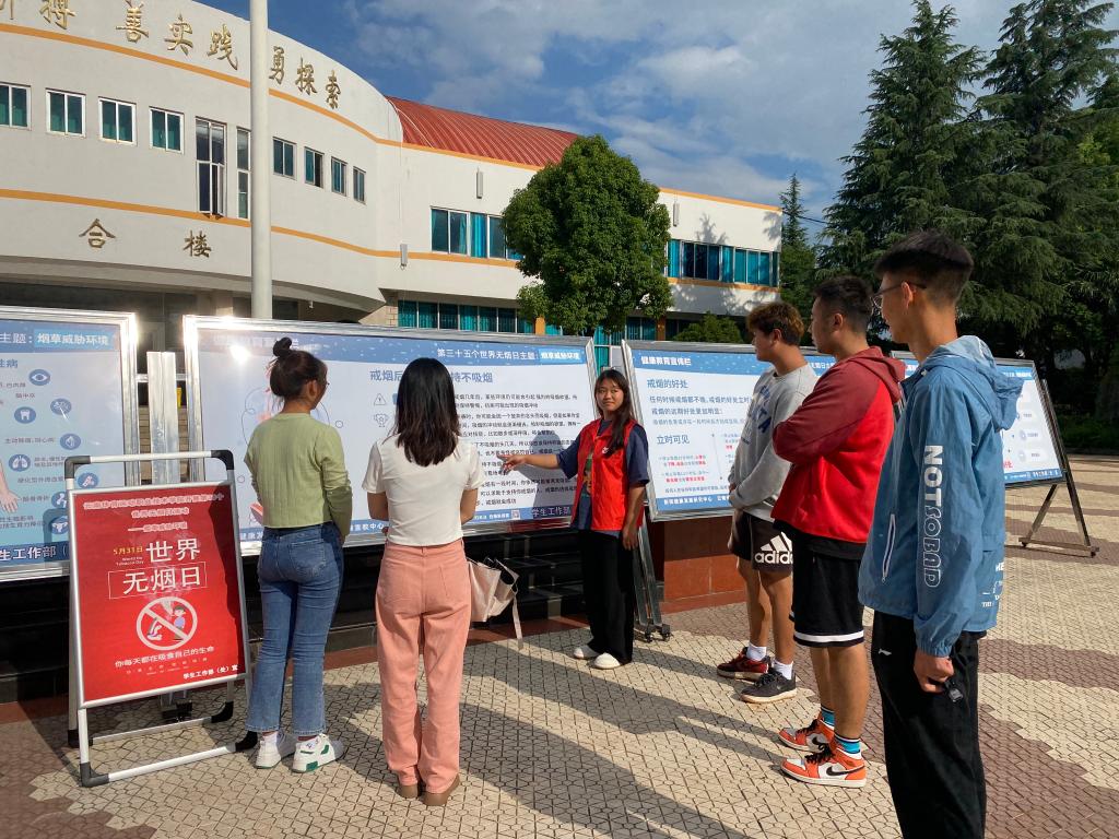 2022年5月31日学校开展了第35个世界无烟日主题宣传活动,每年5月31日是世界无烟日,结合学校实际,学生工作部(处)在学校广场以及各宿舍楼放置宣传展板,向广大师生持续普及烟草使用对健康的危害及无烟环境的重要性,科学宣传烟草对环境的危害,动员师生自觉不吸烟、主动戒烟,共筑美丽健康家园。