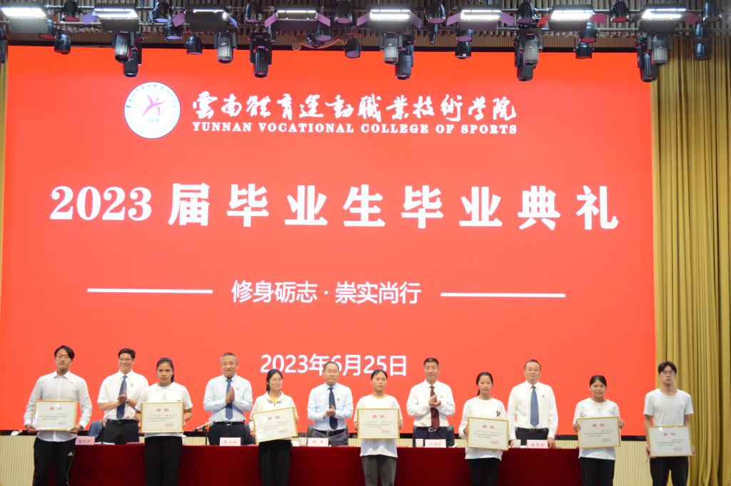 会上,党委副书记张永和宣读了《中共云南省委教育工委 云南省教育厅关于公布2022-2023学年高校省级三好学生 优秀学生干部 先进班集体及大中专优秀毕业生名单的通知》。荣获省级三好学生、省级优秀毕业生、省级先进班集体代表依次上台领奖并与校领导合影留念。
