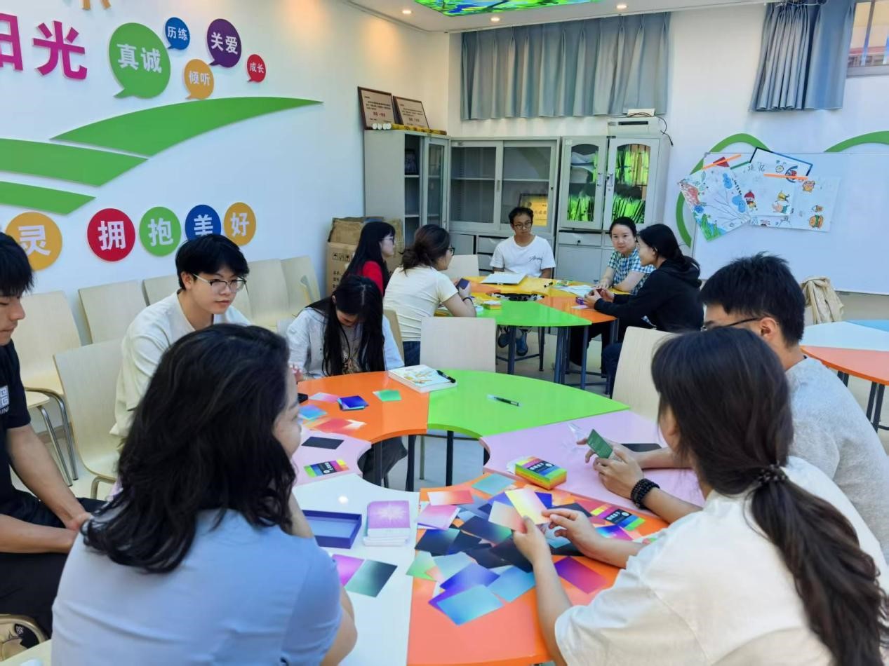 活动开场,辅导老师通过开场介绍和放松冥想,营造轻松氛围,让同学们全身心投入。在卡牌体验环节,大家借助“情绪盒子”和“情绪大师卡”,分组抽取卡牌并分享真实经历与内心感受。热烈讨论中,同学们不仅认识了各种情绪,还挖掘出情绪产生的根源,现场气氛活跃。