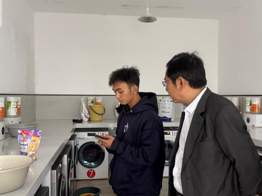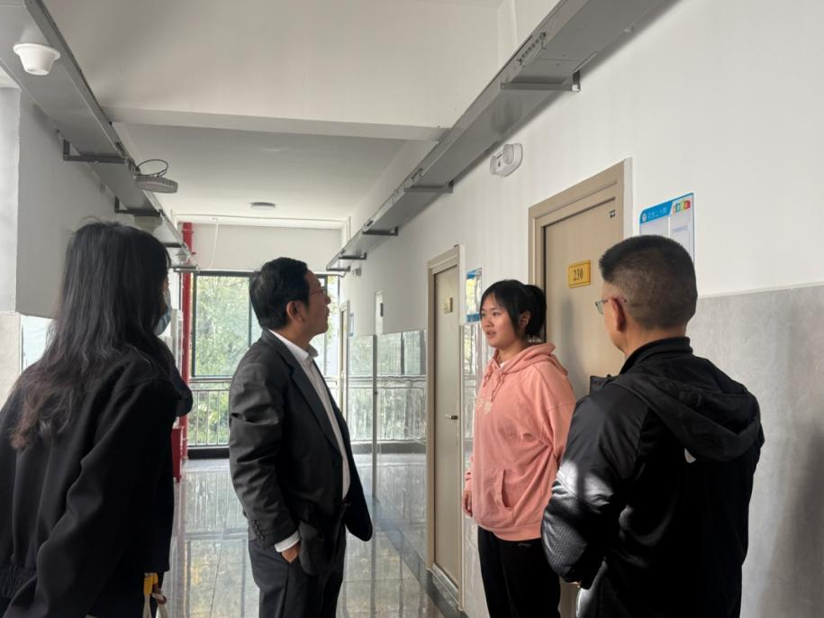校领导一行随机走访学生宿舍,与同学们围坐畅谈、亲切交流。周骎副校长关切询问同学们的学习进展、生活起居及未来规划,重点倾听大家在宿舍设施维护、社区管理服务、文化活动开展等方面的诉求与建议。他叮嘱同学们要珍惜同窗情谊,互帮互助、共同进步,营造团结向上的宿舍文化氛围;鼓励大家充分利用社区搭建的党团活动、学业辅导、心理支持等多元平台,主动参与实践、锤炼本领,实现全面发展。