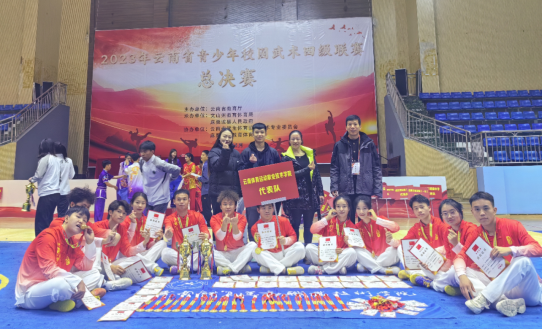 2023年11月23日—26日,由云南省教育厅主办,文山州教育体育局、麻栗坡县人民政府承办,云南省学生体协武术专委会、麻栗坡县教育体育局协办的2023年云南省青少年校园武术四级联赛总决赛在麻栗坡体育馆举行,有来自全省的中小学、高等院校等共计40余支队伍参加本次比赛,参赛人数共计300余人。best365派出校武术套路代表队教练员高丽琼(兼领队)、任典帅,选拔派出8男4女,共计12名同学,参加19个单项1个集体项目的角逐。在比赛中....