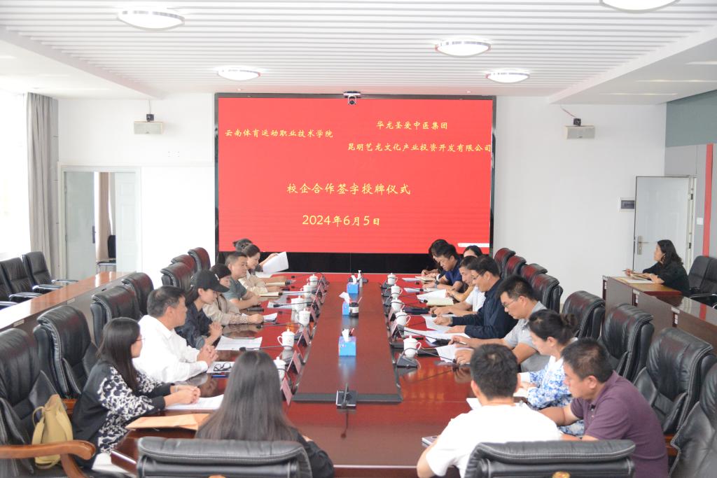 6月5日,学校与华龙圣爱中医集团、昆明艺龙文化产业投资开发有限公司在云帆楼第一会议室举行校企合作签约及授牌仪式。党委副书记、院长代红兵,副院长董利民,华龙圣爱中医集团圣爱养生堂有限公司总经理陈宇翔,昆明艺龙文化产业投资开发有限公司副总经理李琛以及学校相关部门负责人参加签约仪式。董利民对两家企业的到来表示欢迎,并学校的基本情况,师资情况,招生情况,以及近几年取得的成绩做了介绍。他感谢华龙圣爱中医集....