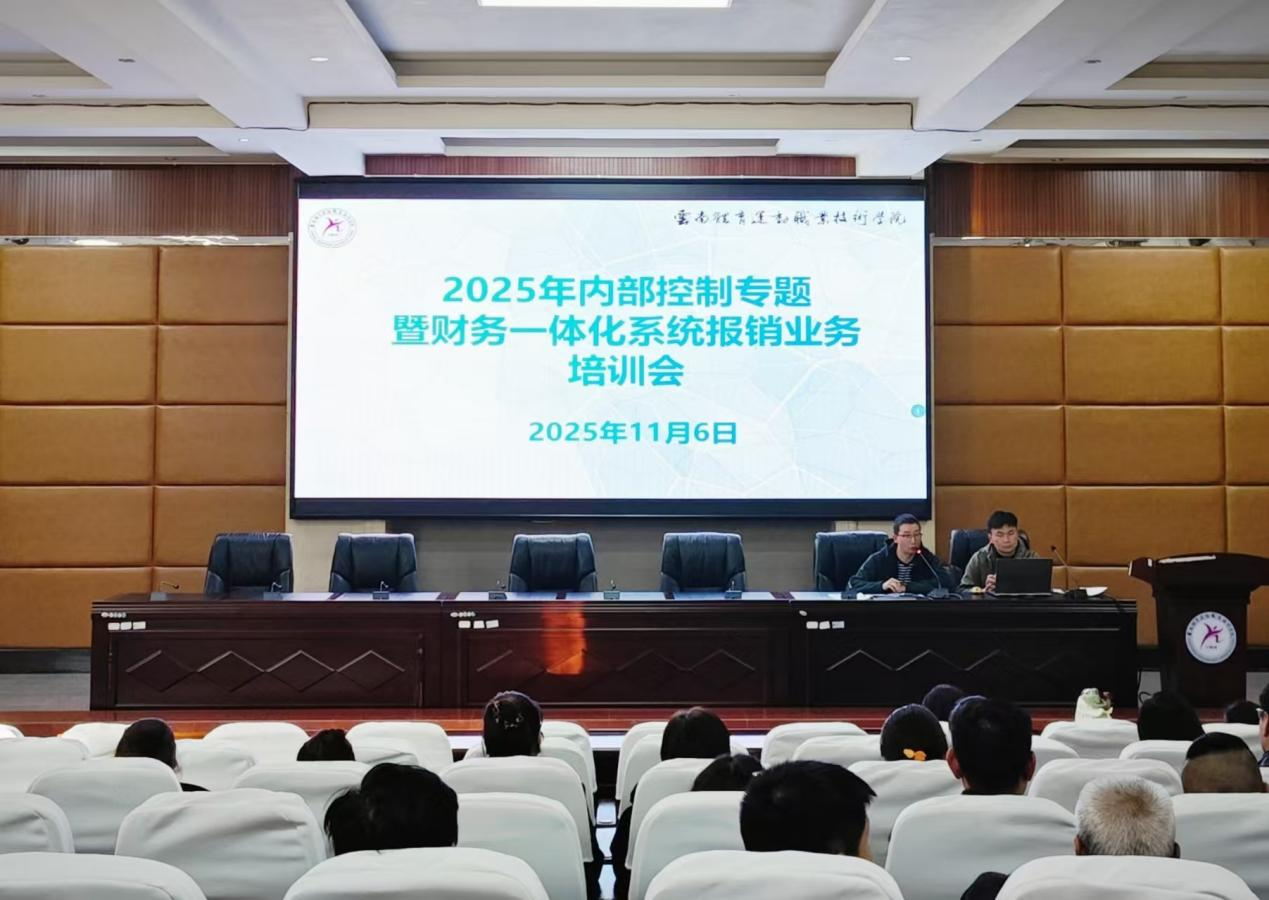 2025年11月6日下午,学校召开2025年内部控制专题暨财务一体化系统报销业务培训会。校领导、各部处室、二级学院、中心负责人及相关人员参加会议。周骎副校长针对本次培训与工作部署,指出内控建设是廉政风险防控的基石,是推动学校治理体系和治理能力现代化的关键抓手,要求全体工作人员深刻把握新时代行政管理变革趋势,从三方面精准发力:一是强化思想引领,加强理论武装。深入学习领会习近平经济思想,以科学理论指导工作实践...