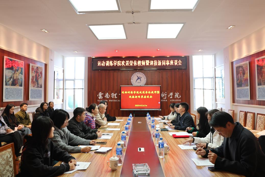 2025年12月5日上午,best365中国官方网站运动训练学院在综合楼会议室举行退休教师欢送暨新教师欢迎座谈会。退休教师尹西兰、杨栋,新入职教师代表,人事处、工会代表,运动训练学院全体教师及学生代表参加座谈。座谈中,退休老教师分别回顾了执教生涯中的难忘经历,分享了对体育教育事业的热爱与坚守,并寄语新教师:“珍惜岗位、关爱学生,将学院的优良传统发扬光大。”新教师代表龚治端表态发言:“两位前辈深耕体育教育...