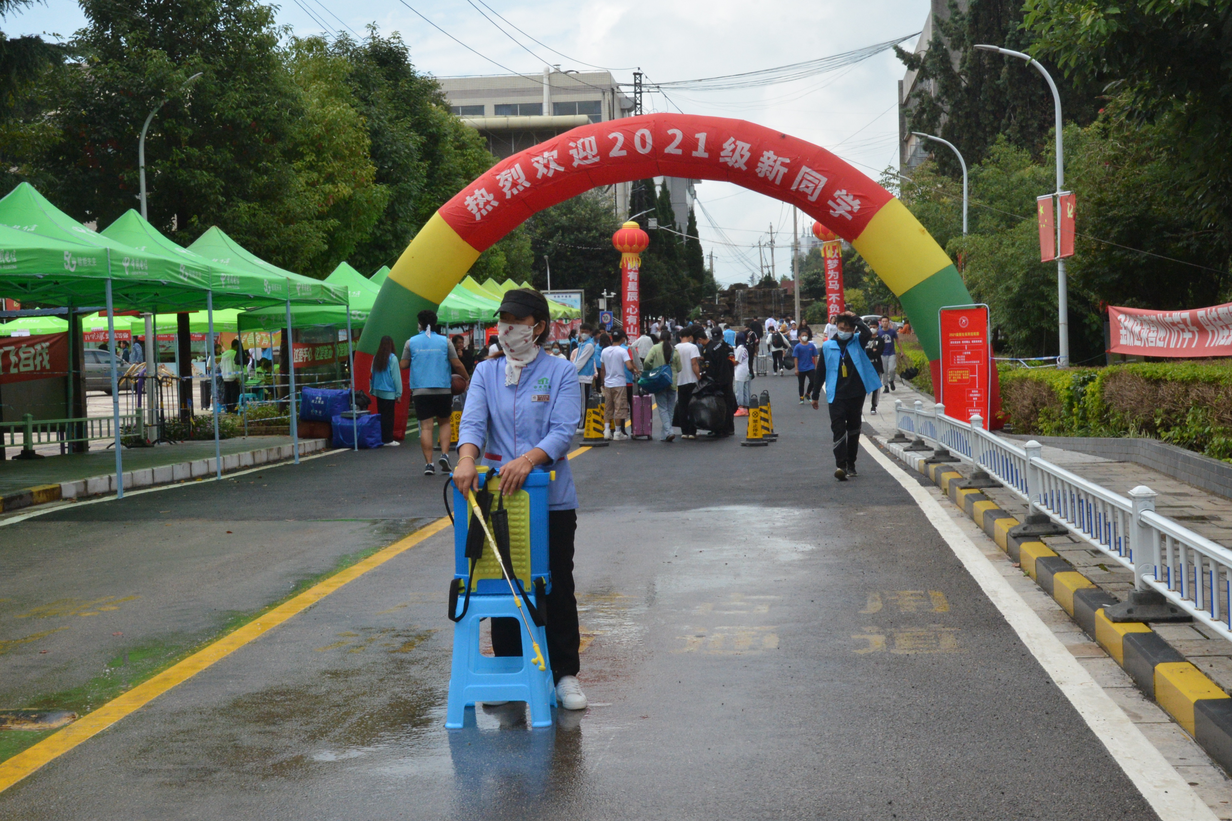 “叔叔阿姨请留步,您放心,把行李交给我们就行!” “同学你好!请出示核酸检测证明、健康码和行程码,测温无异常后进入校门。”“注意脚下,小心积水!报到登记请随我来,这边有序排队……” ...