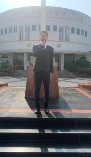 礼毕之后,21大运4班马胡贤彪同学以题为《红星血染 红旗飘扬》进行了国旗下的演讲,讲述了我们作为新时代的大学生,应该积极响应国之号召,紧跟党的步伐,励志以体育之名为强国事业烘云托月。鼓励大家执着追求,不懈努力,高亢激昂的演讲赢得了全体师生阵阵掌声。
