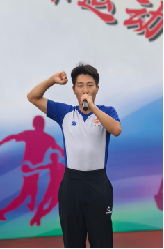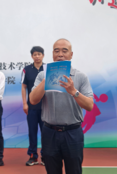 张浩辉同学代表全体运动员宣誓,费洪清代表全体裁判员宣誓。最后,由学校党委书记缪军宣布本次运动会开幕,并为本次比赛开球。