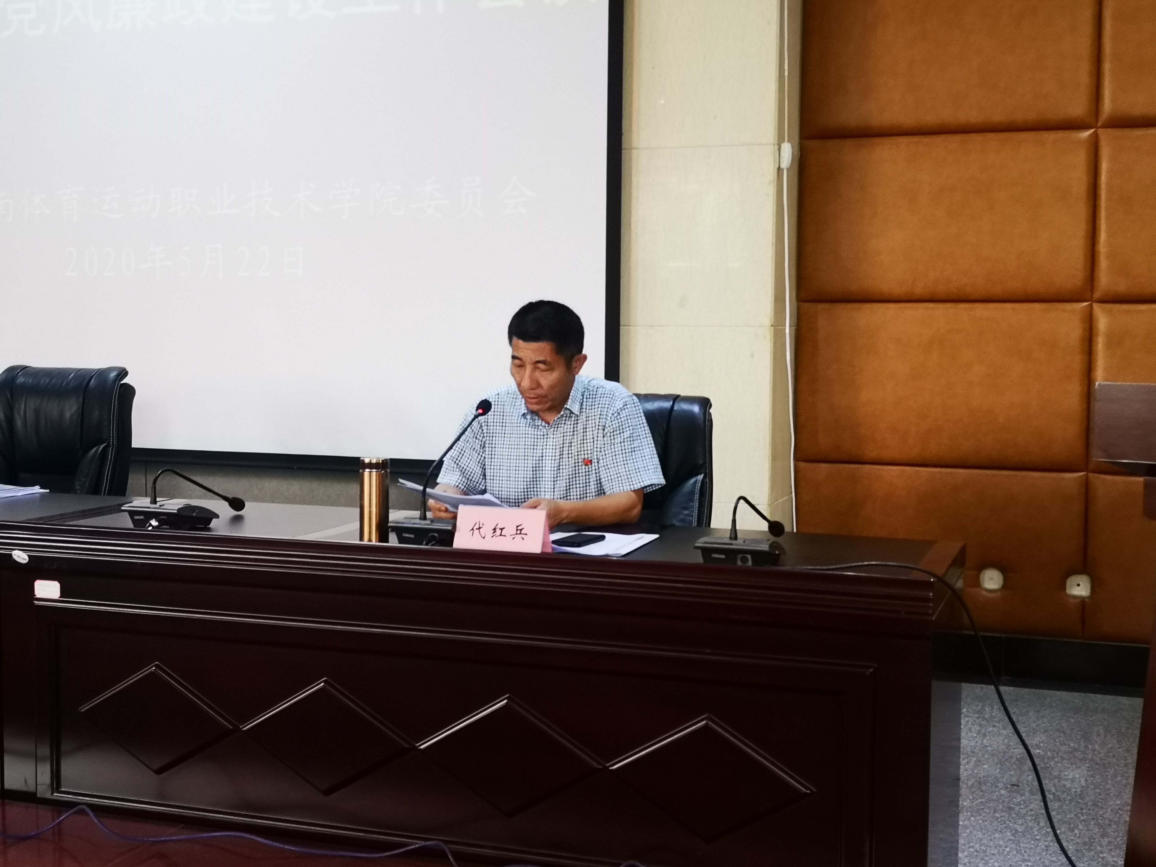 2020年5月22日下午,学校2020年党风廉政建设工作会议在云帆楼第一报告厅召开,会议以习近平新时代中国特色社会主义思想为指导,深入学习贯彻党的十九届二中、三中、四中全会精神,全面落实十九届中纪委四次全会和省纪委十届五次全会决策部署,对学校2019年党风廉政建设工作进行总结,部署 2020年工作任务。校党委书记陈麟出席会议并讲话,校党委副书记、校长代红兵主持会议,校党委委员、纪委书记金吉斌作纪检监察工作报告。校领导班子成员,学院各部门、二级学院党政正(副)职负责同志,学院全体教职工党员,党政办、组织部、监审处以及七个关口涉及部门全体人员参加会议。