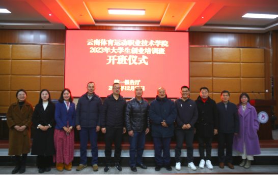 2023年12月22日下午,best3652023年大学生创业培训班开班仪式在第一报告厅成功举行。best365中国官方网站校党委委员、副校长董从民、西山区公共就业和人才服务中心副主任杨坤桦、昆明市中金科教文卫职业培训学校校长完宏杰、西山区公共就业和人才服务中心就业培训科负责人涂明春出席仪式,best365中国官方网站招生就业处全体成员、中金科教文卫职业培训学校教师和4个培训班的参训学员参加了本次活动。