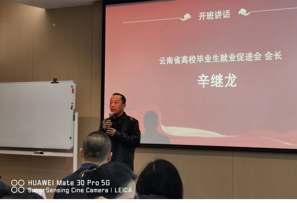 董利民为开班仪式致辞。他对云南省高校毕业生就业促进会提供学习平台和主讲教师辛勤付出表示感谢。他希望所有参训教师能够沉静下来认真学习,努力提高创新意识,增强创新创业能力,提升为学生创新创业服务的专业水平。