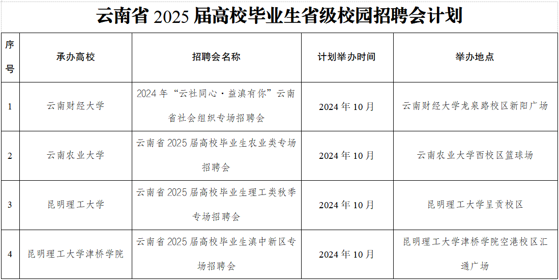 @云南高校毕业生 这46场省级校园招聘会别错过!
